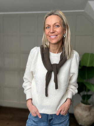 Mel Triangle Scarf - Black, Chocolate Stripe, Winter White Stripe