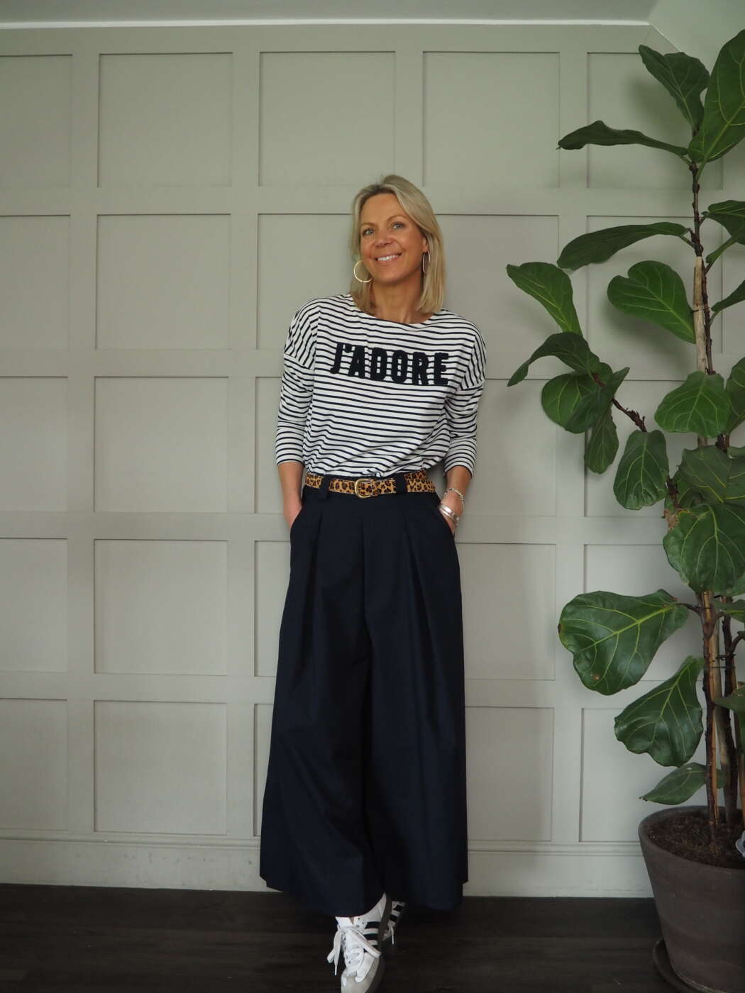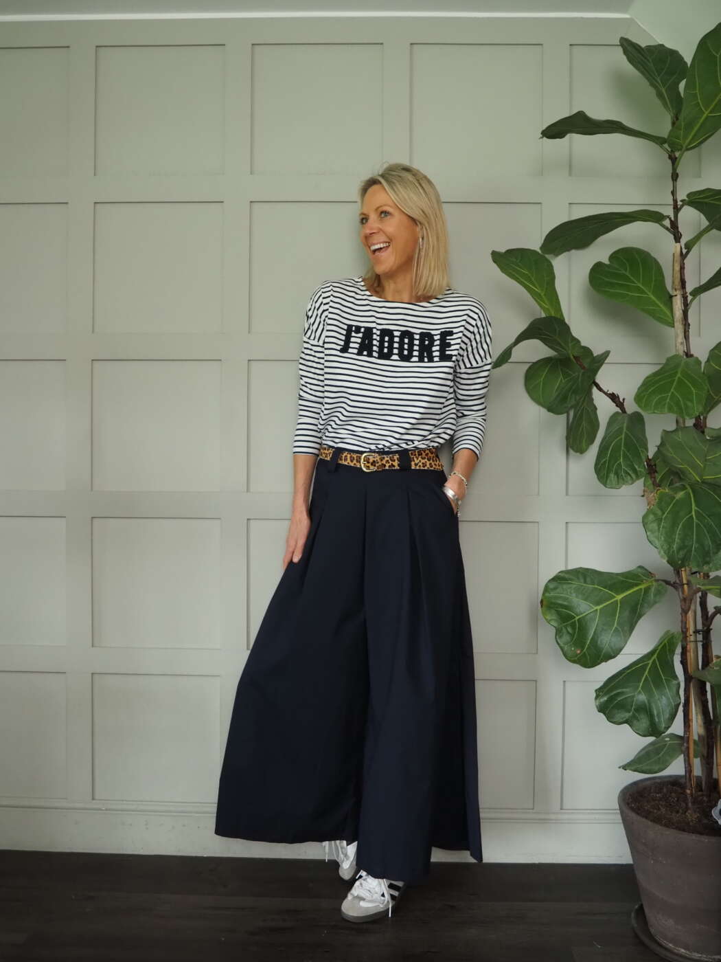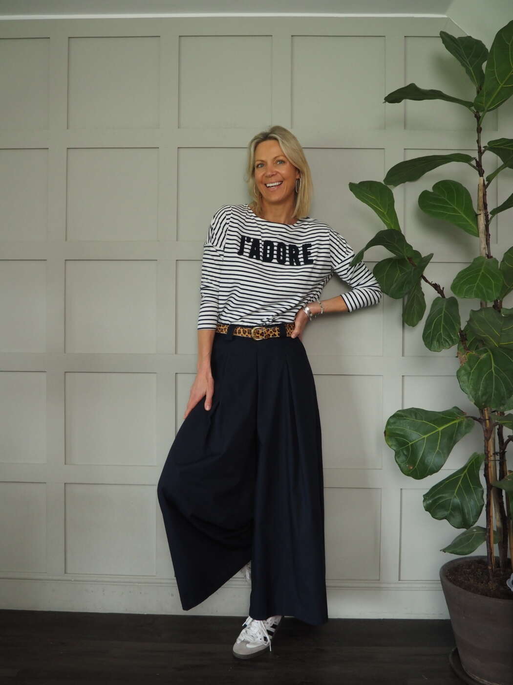 Worn with Digger Culotte Trousers – 5 Colours and the J’Adore Striped long sleeved t-shirt – 2 colour ways