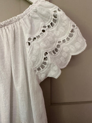 Art Long Sleeve Blouse with Broderie Anglaise Collar and Tie Detail - Off White