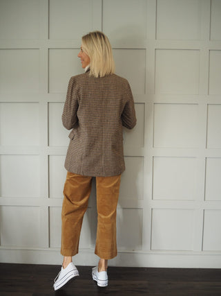 Atlanta Wide Leg, Cropped, Mid-Rise Corduroy Trousers - Camel