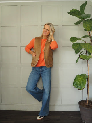 Banel Faux Sheepskin Gilet with Soft Lining and Toggle Fastening By Frnch - Camel