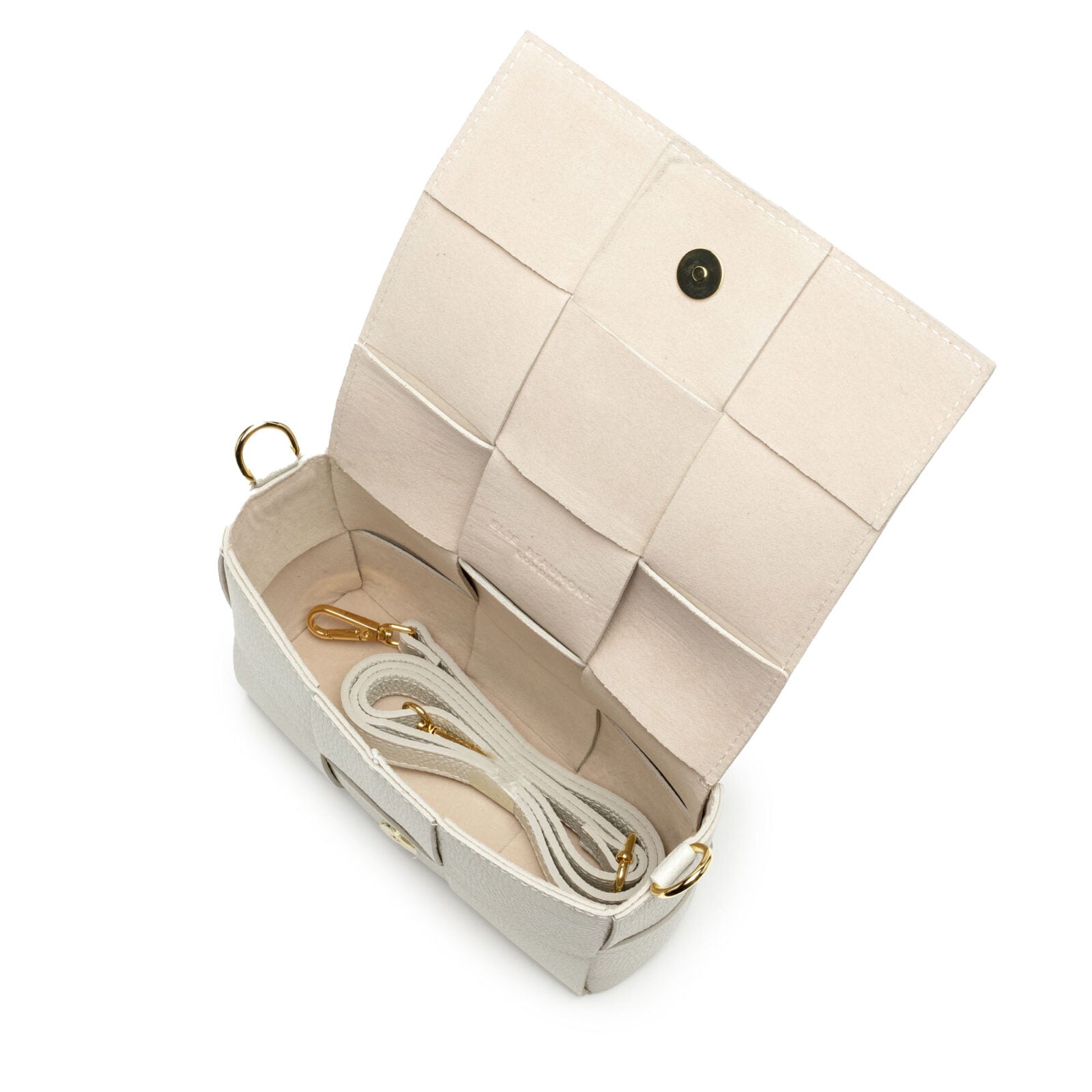 From shopping around town as a crossbody, through to an elegant night out as a clutch, these bags are gorgeous. Hand-finished and 100% genuine leather, they have a lovely square woven design, gold clasp fastening and comes with a matching leather strap. The perfect size for your phone, cards, keys, make-up and other essentials.