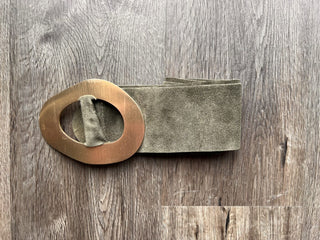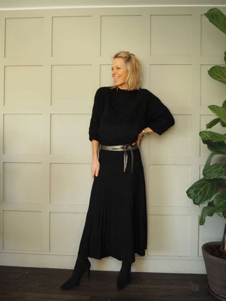 Farrah Leather and Suede Belt with Square Gold Metal Buckle - Black
