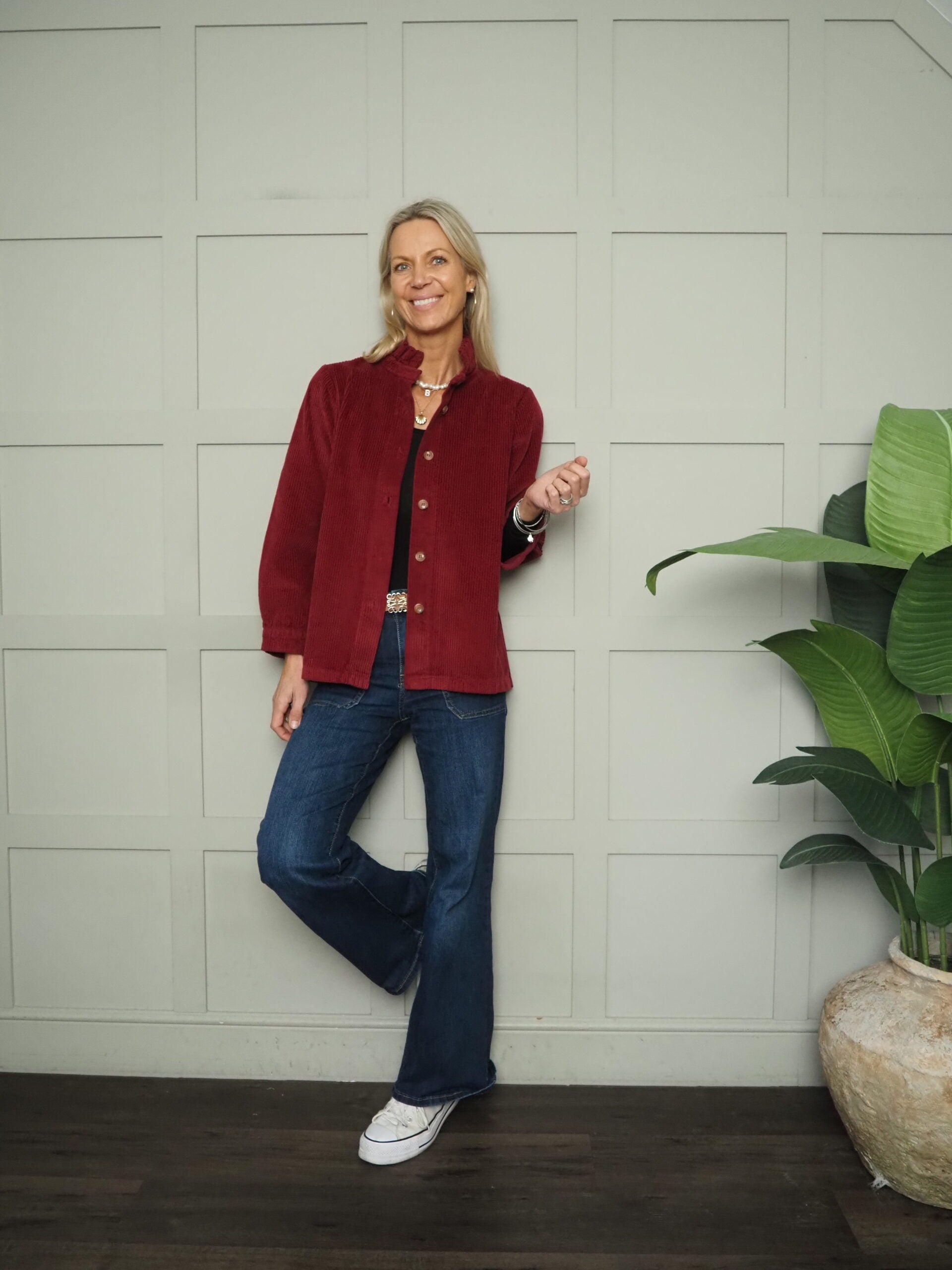 A stunning, relaxed fit corduroy blouse which is classic and timeless and perfect for the new season. Featuring a pleated, high collar, button fastening to the front, button cuffs, and a straight hem with small side splits. Can be worn as a shirt or unbuttoned, layered over a top as a shacket.