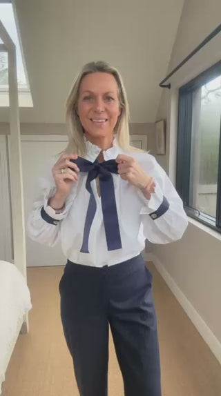 Juliet Single-Breasted Blazer with Single Button and Pockets - Black, Ecru
