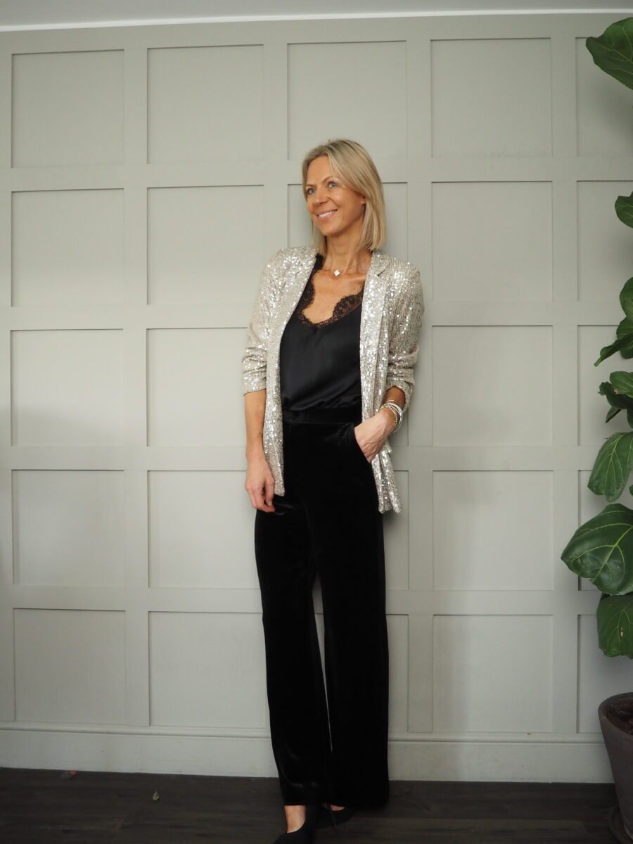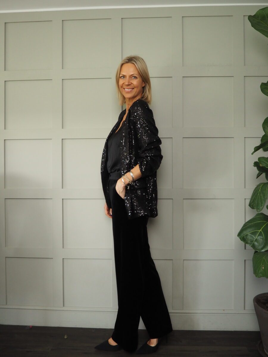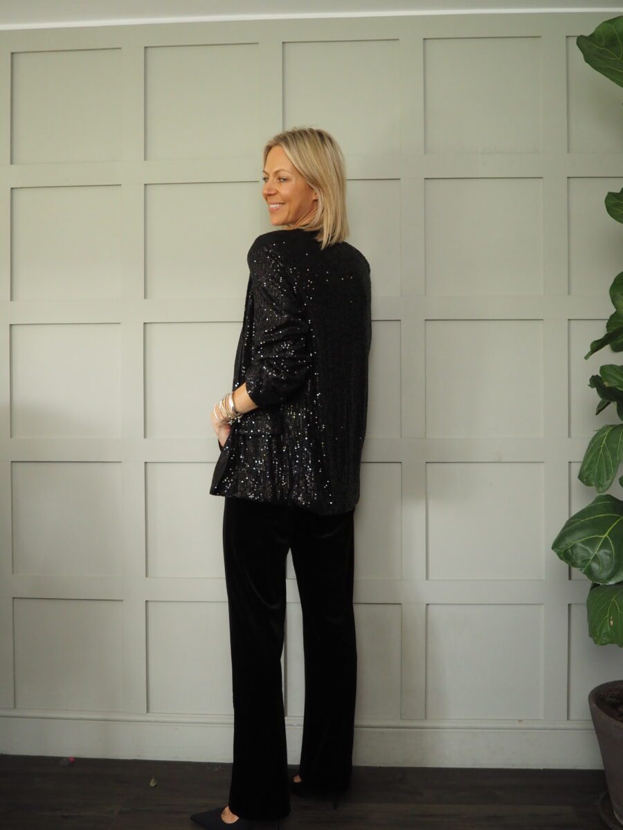 Fabulous sequin jacket, this is a blazer style with faux pockets to the front, a lapel but no fastenings, allowing it to drape beautifully.