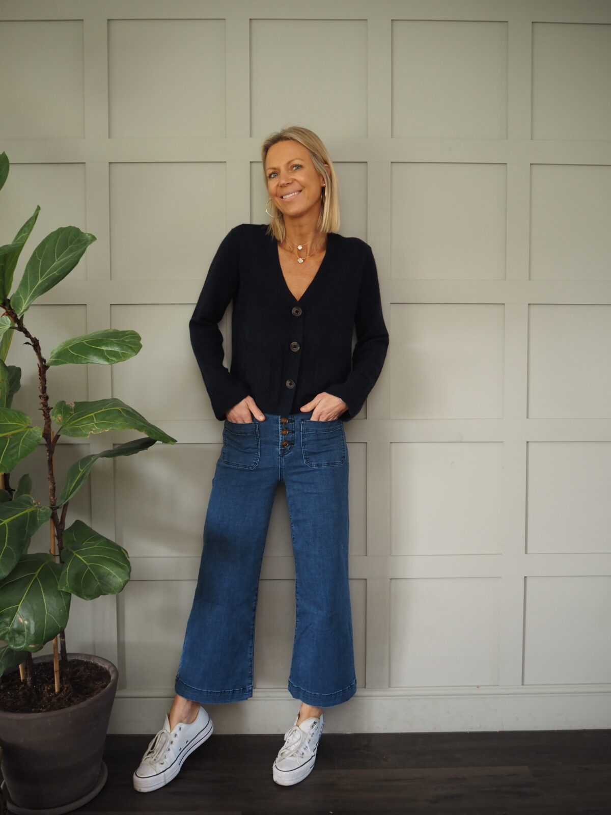 Worn here with the Eva jeans in mid-blue.