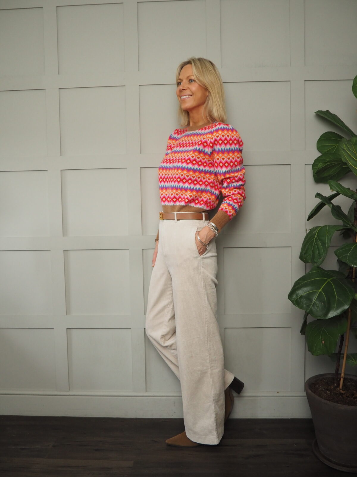 Jumper and cardigan worn here with the CLARISSE Corduroy Trousers