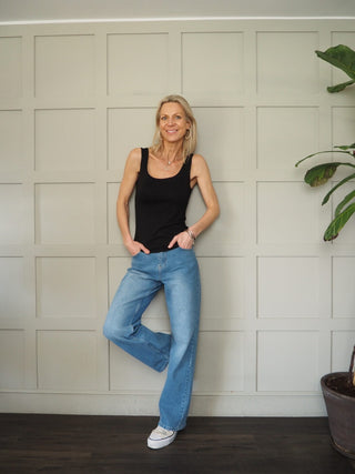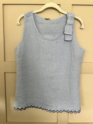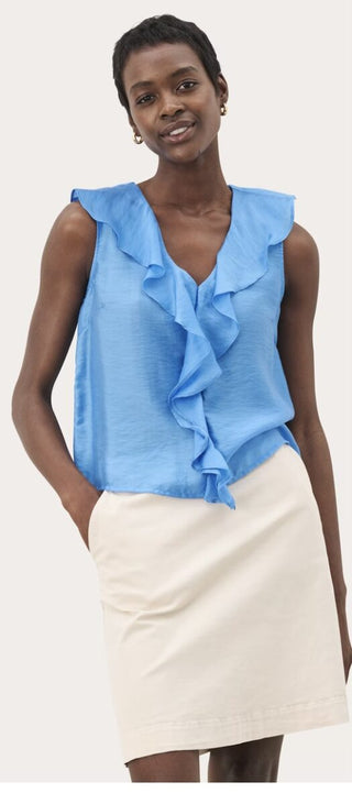 Rue Silky Feel Vest with Frills by Part Two - Champagne, Cornflower Blue