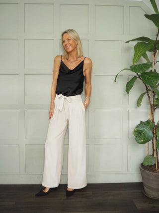 Cobain Silky Cowl Neck Camisole with Adjustable Spaghetti Straps - Black