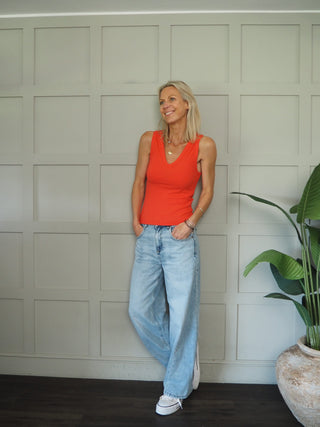 Nikkia Ribbed Vest with V Neckline by Part Two - Red