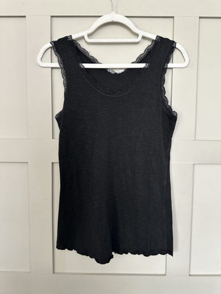 Fresh Ribbed Vest with Lace, Scoop Neck & Frilly Hem - Black, Pale Pink, White