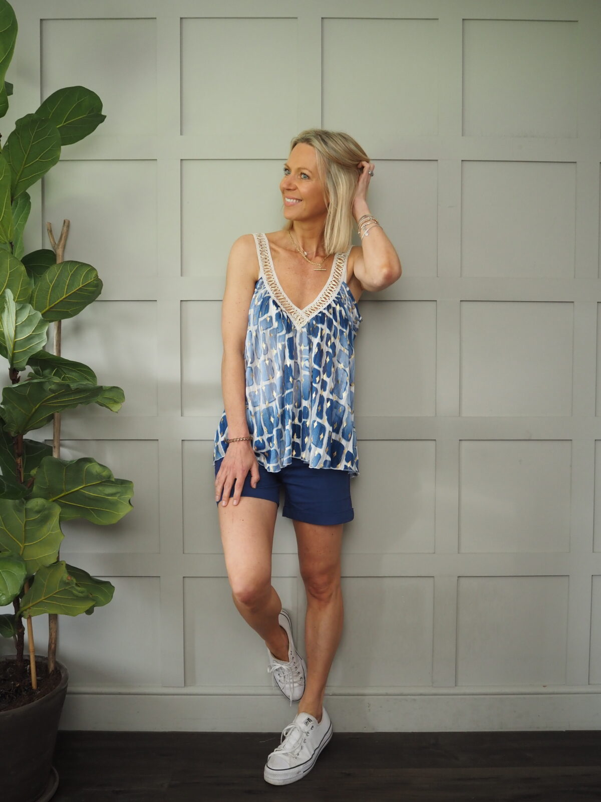 Worn here with the Rae shorts in Blue.