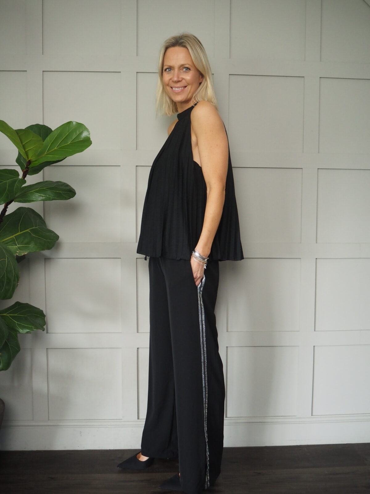 Fantastic for parties, this top is super pretty with a fab sparkle. Pleated, halter-necked and lined with a single button fastening at the back.
