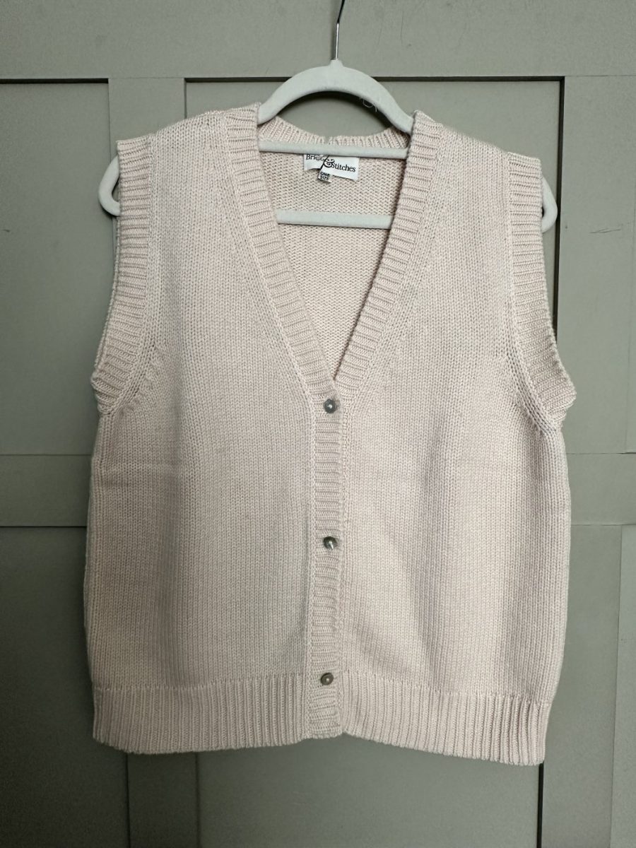 This beautiful and incredibly soft cashmere mix sleeveless waistcoat can be worn alone or layered over a dress, blouse or T shirt. It has a V neckline and 3 mother of pearl button fastenings.