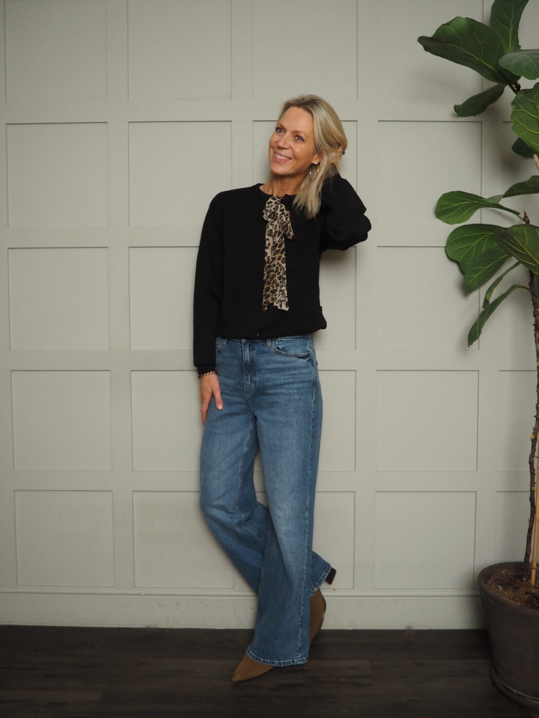 The Illinois cardigan is cute and fun with gold button fastening at the front and a leopard print tie detail at the neck. The tie is versatile – can be left hanging, tied in a bow, tied in a knot – the choices are endless!