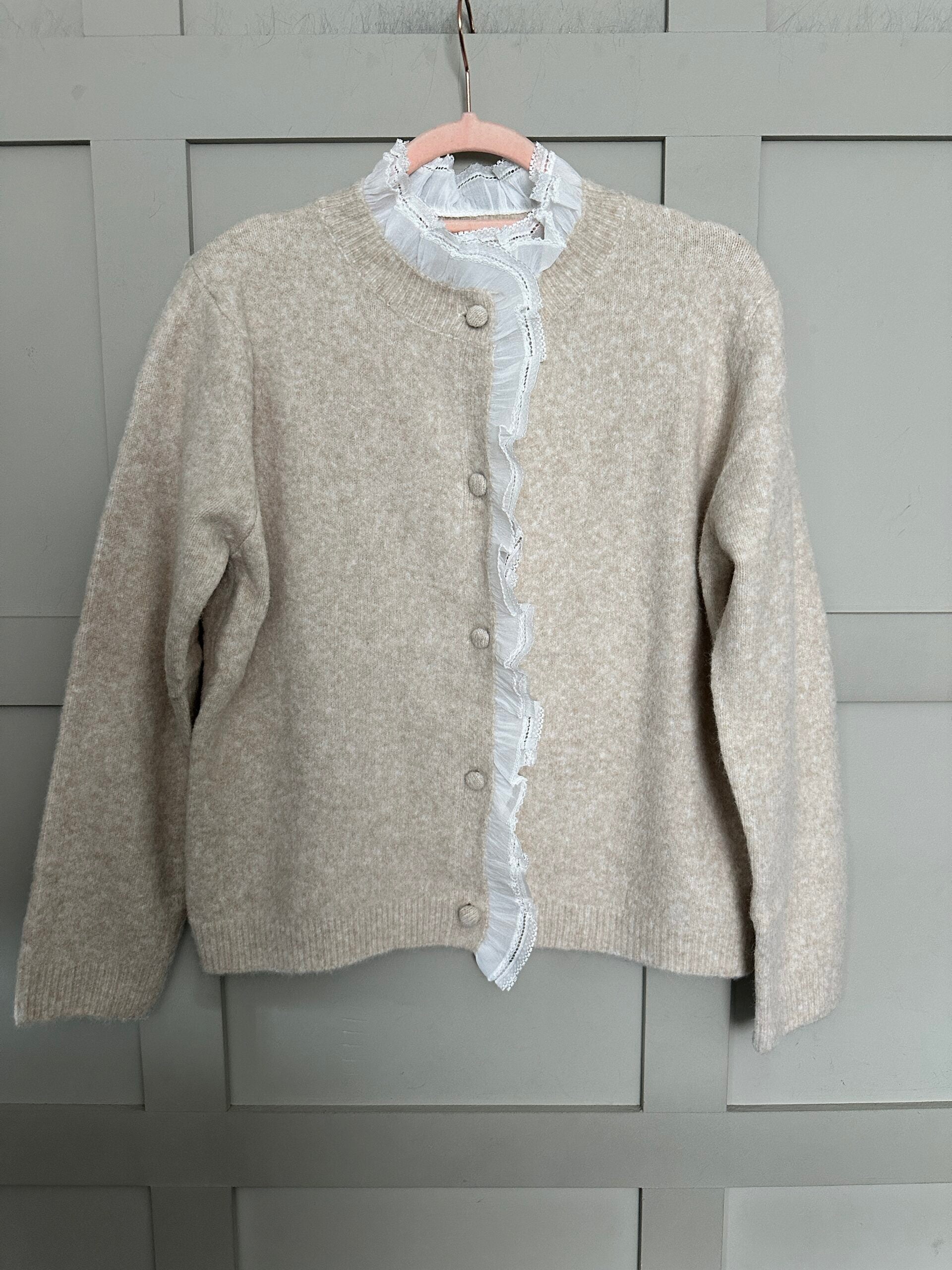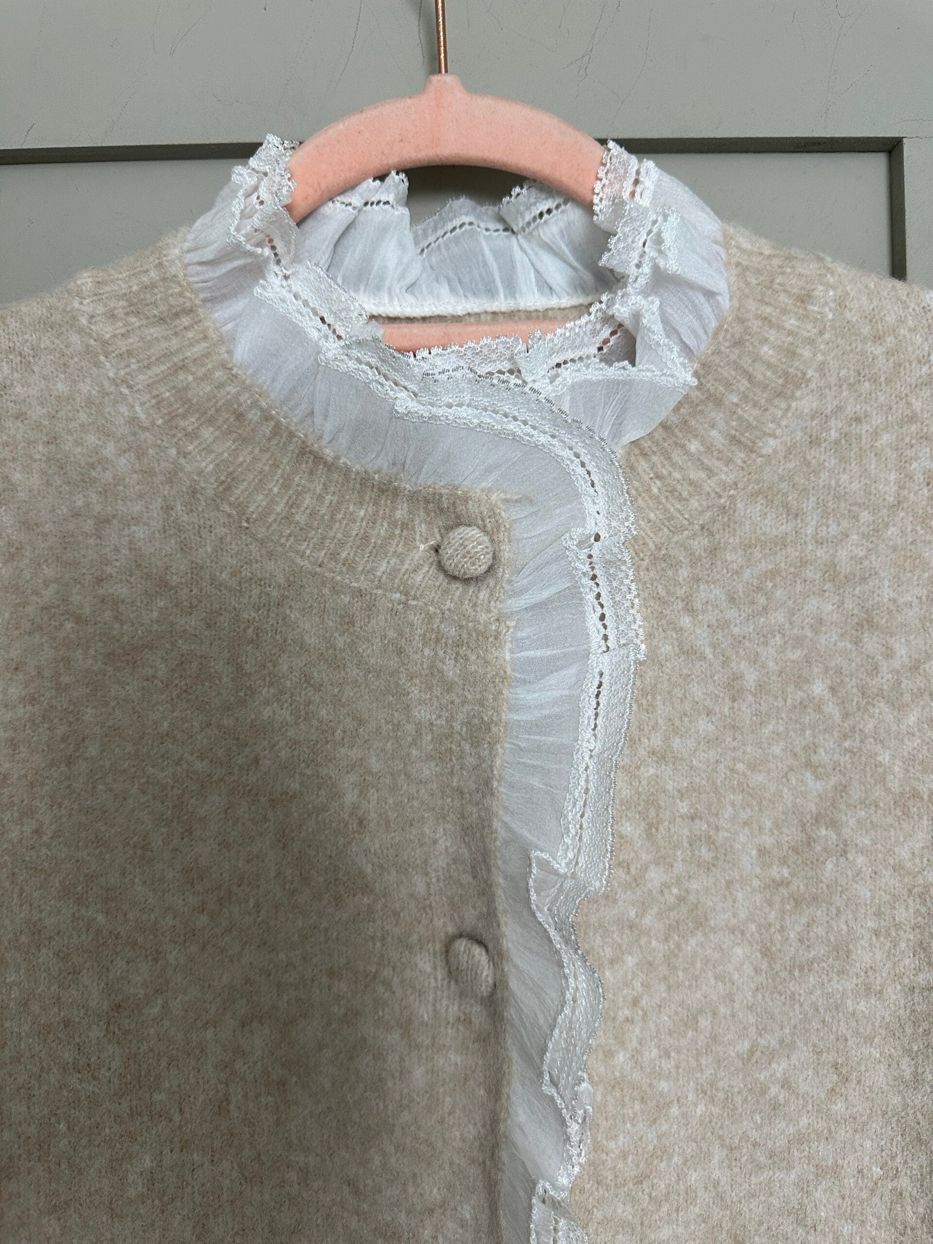 Thornham Cardigan with Ruffle Details - Oatmeal