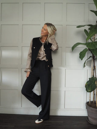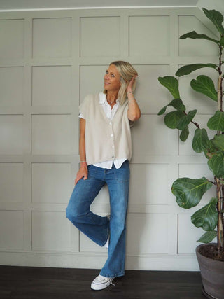 Canmello Sleeveless Cardigan with Gold Buttons & Faux Pockets - Black, Camel and Ecru