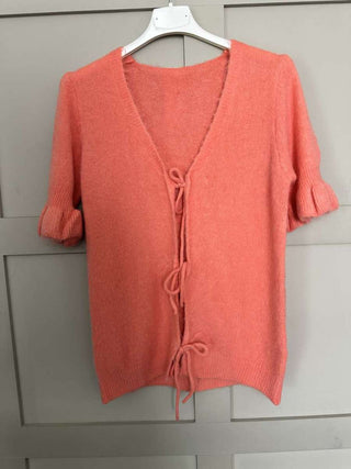 Amy Short Sleeve Cardigan with Tie Front, Frill Detail - 5 Colours