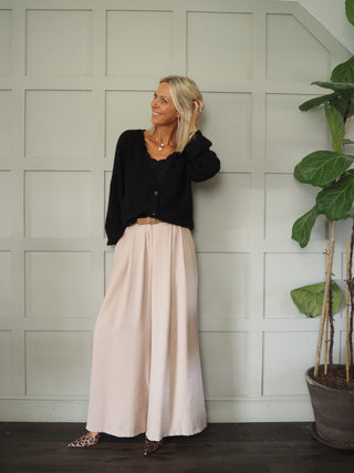 Arcadia Cardigan with Single Pearl Fastening & Fluted Cuffs - Baby Pink, Oatmeal and Terracotta