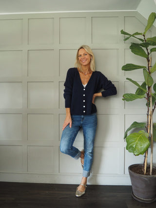 Oslo Cashmere Mix, V-Neck Cardigan - Black, Ivory and Navy Blue
