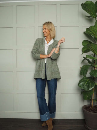 Chloe Chunky Knit Cardigan with Front Pockets and No Fastenings - Black, Ecru and Khaki