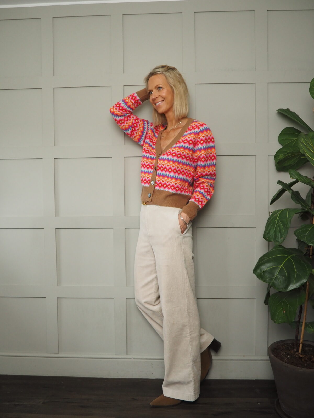 Jumper and cardigan worn here with the CLARISSE Corduroy Trousers