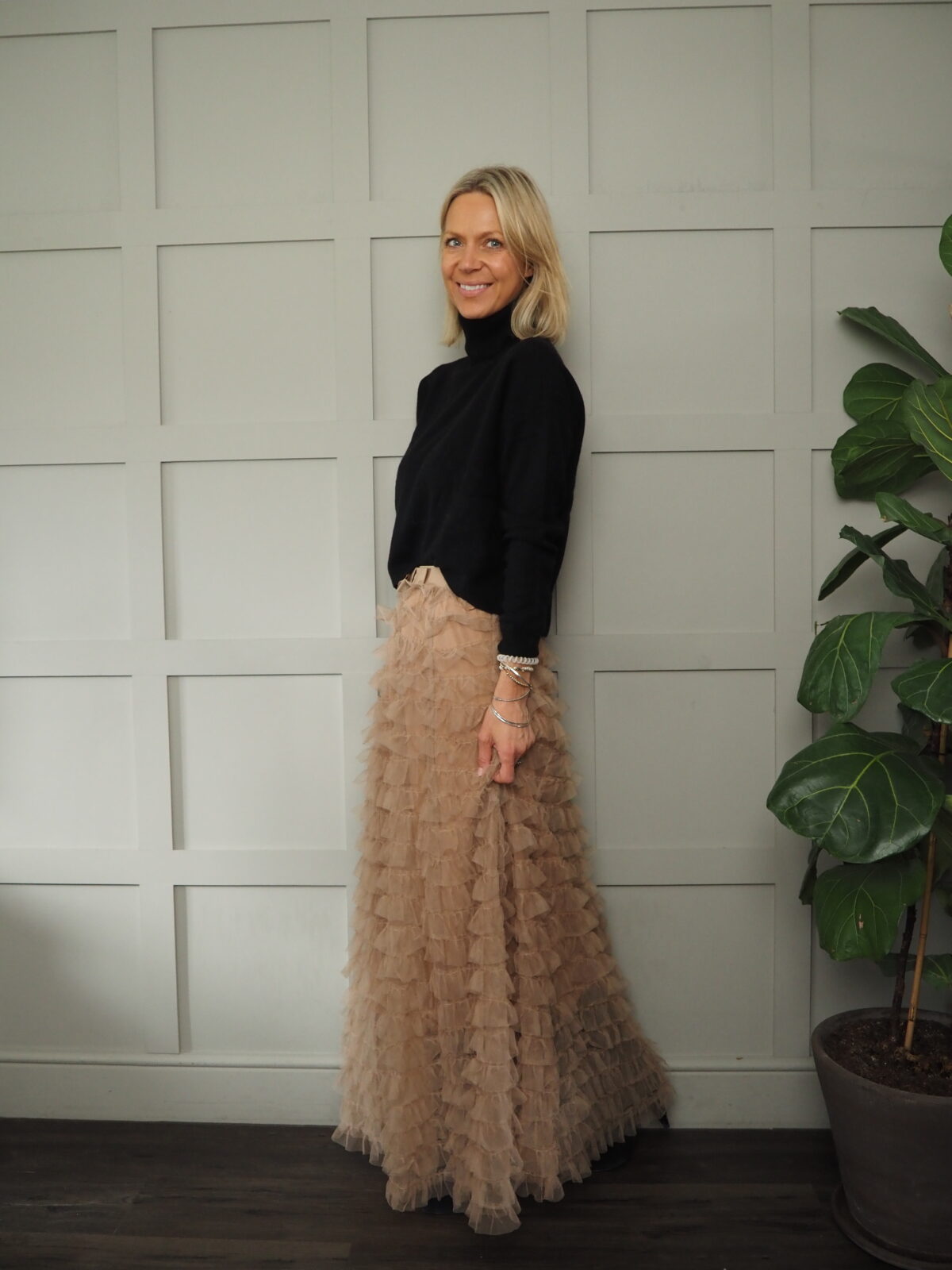Black worn here with Ruffle Tulle Skirt – MOCHA and the Patched Pocket Mabel Jeans – Dark Denim