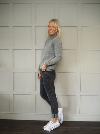 Cashmere Super Soft Polo Neck with Button Detail by Brodie - Grey