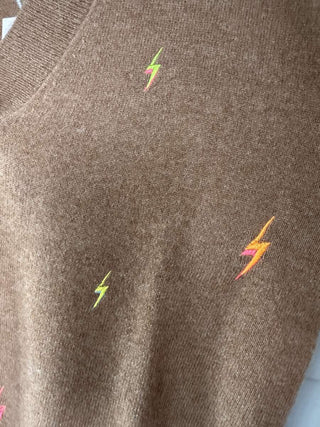 Lightening Bolt Cashmere Jumper by Brodie - Camel and Grey