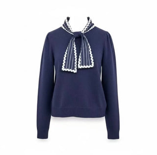 Cottie Short Sleeve Jumper with Scarf - Ecru, Navy Blue, Sand