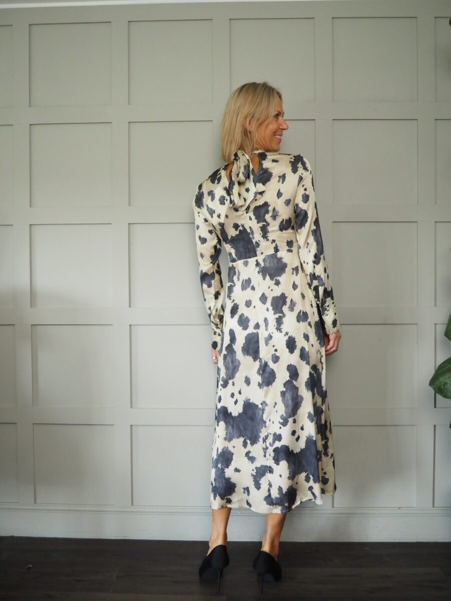 Gorgeous dress by the amazing brand Ottod’Ame. The dress features a high neck and tie detail, a cut out back with a zip fastening.