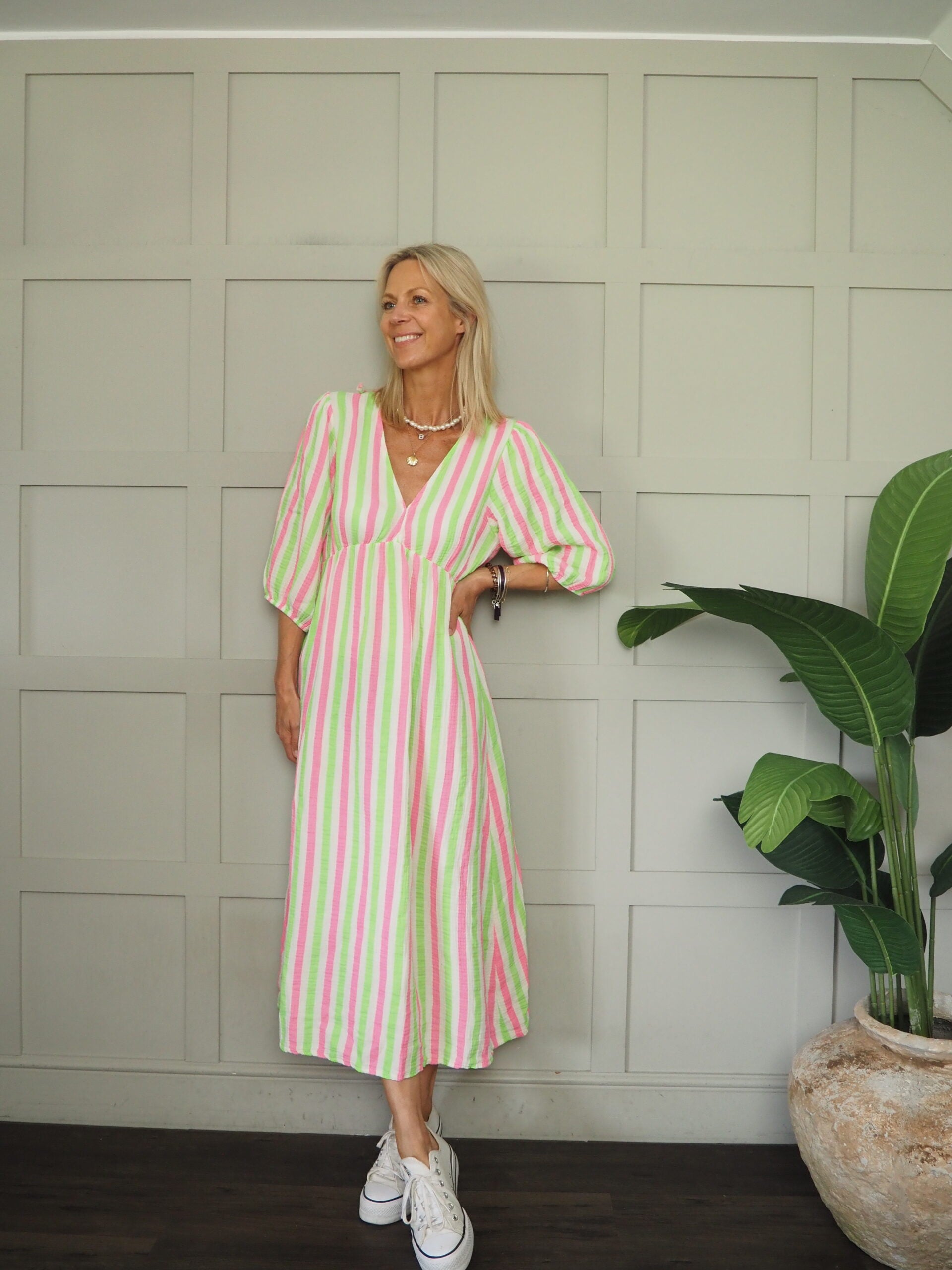 Available in: Pink/Green wide stripes, Pink/Orange narrow stripes