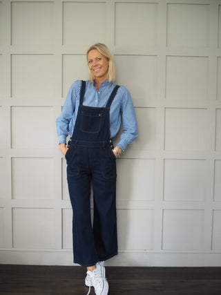 Elodie Frill Dungarees by Seventy Mochi - Dark Denim