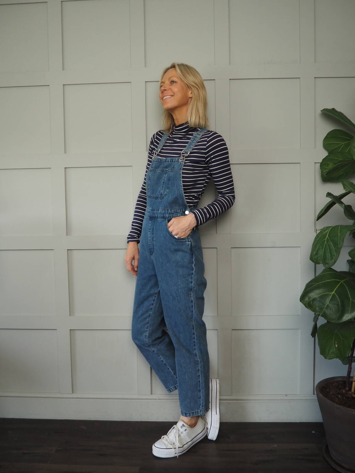 Fantastic dungarees in mid blue denim colour. Pockets to the sides and adjustable straps.