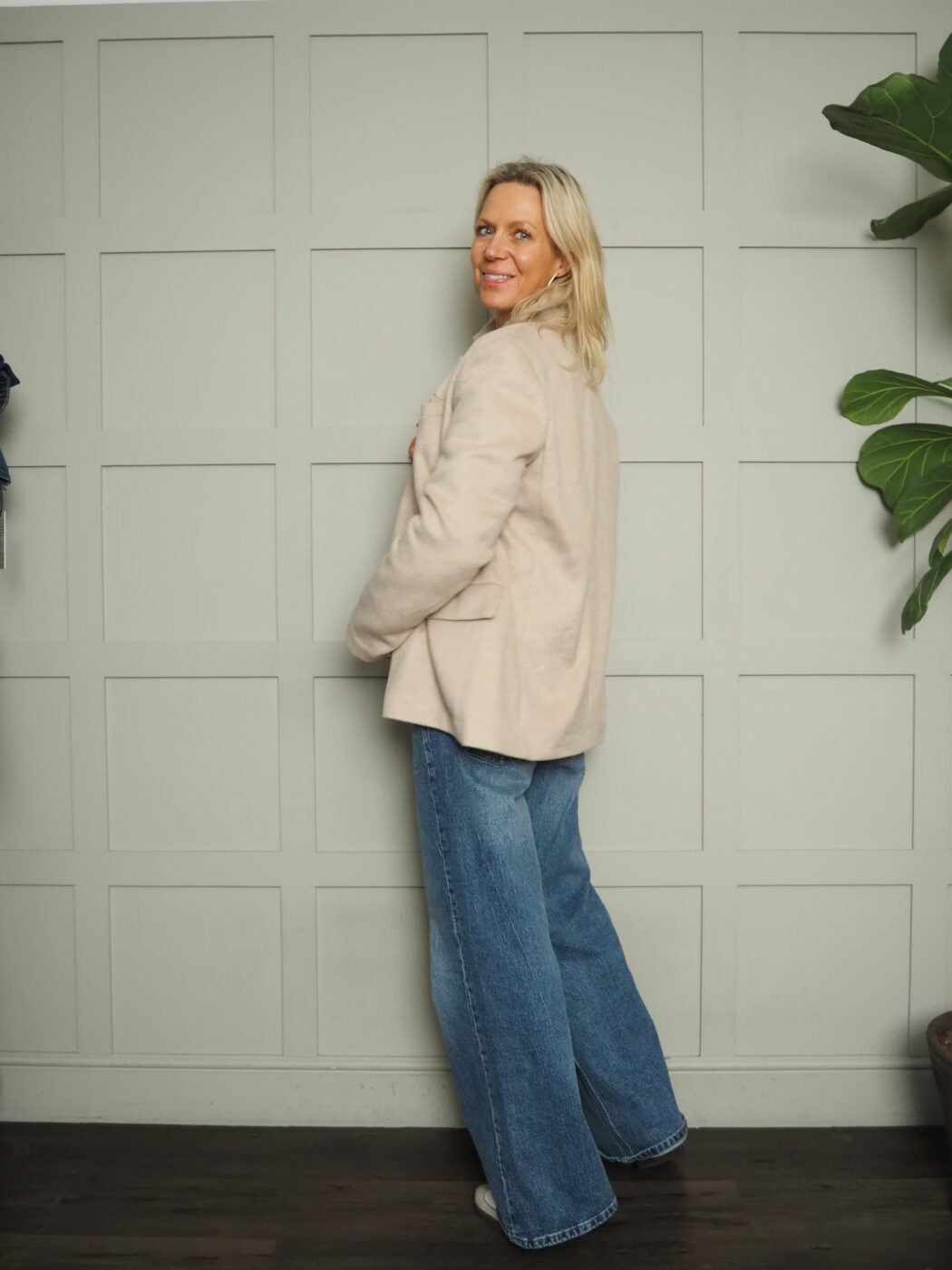 Worn here with the Kyra High Rise, Wide Leg Jeans – Denim Blue and the Bleona Chunky Knit Wool Jumper By Moss Copenhagen – Ecru