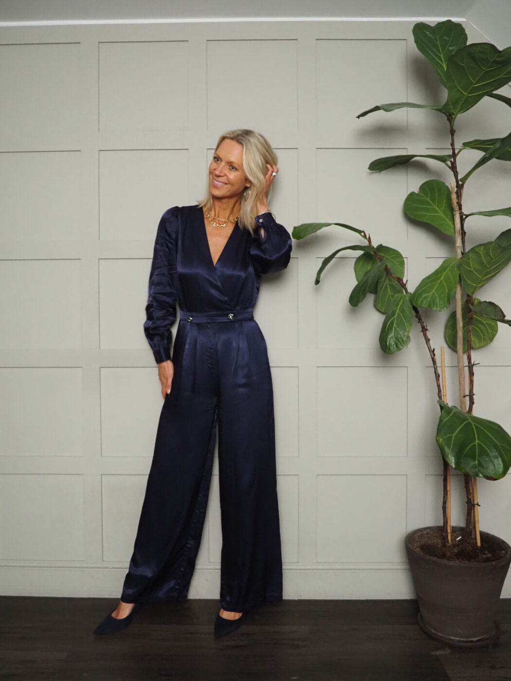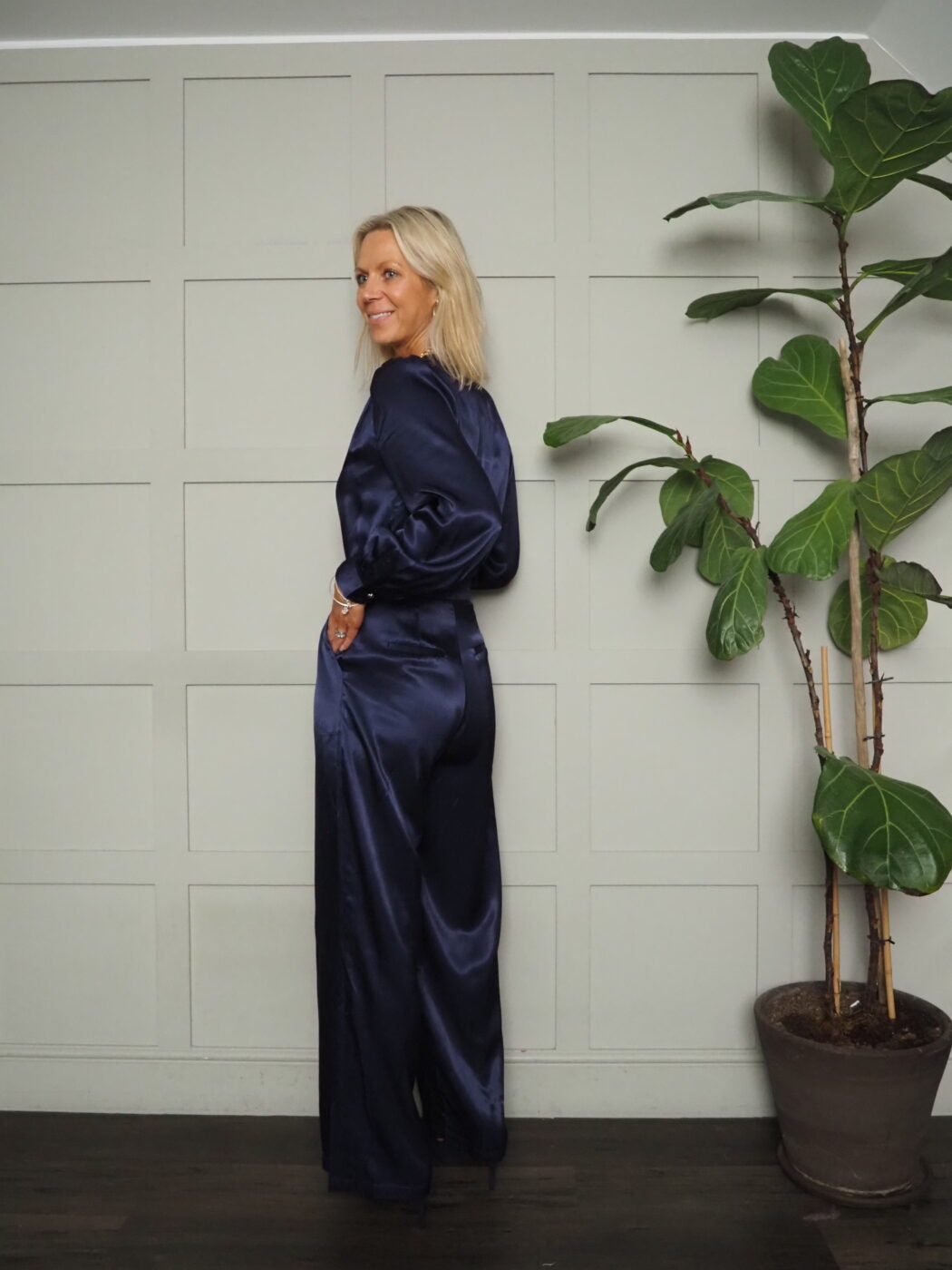 The Rachelle jumpsuit is stunning and would be wonderful for so many occasions, a winter wedding, a party or Christmas. Super stylish and easy to wear. It has two pretty silver buttons and a zip fastening, pockets to the side and wide legs. Two faux pockets to the rear.