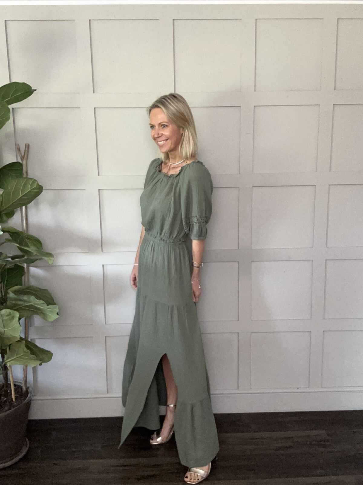 Sizing: one size to fit 8-14. Becky is a size 8-10 and 5’9” tall.