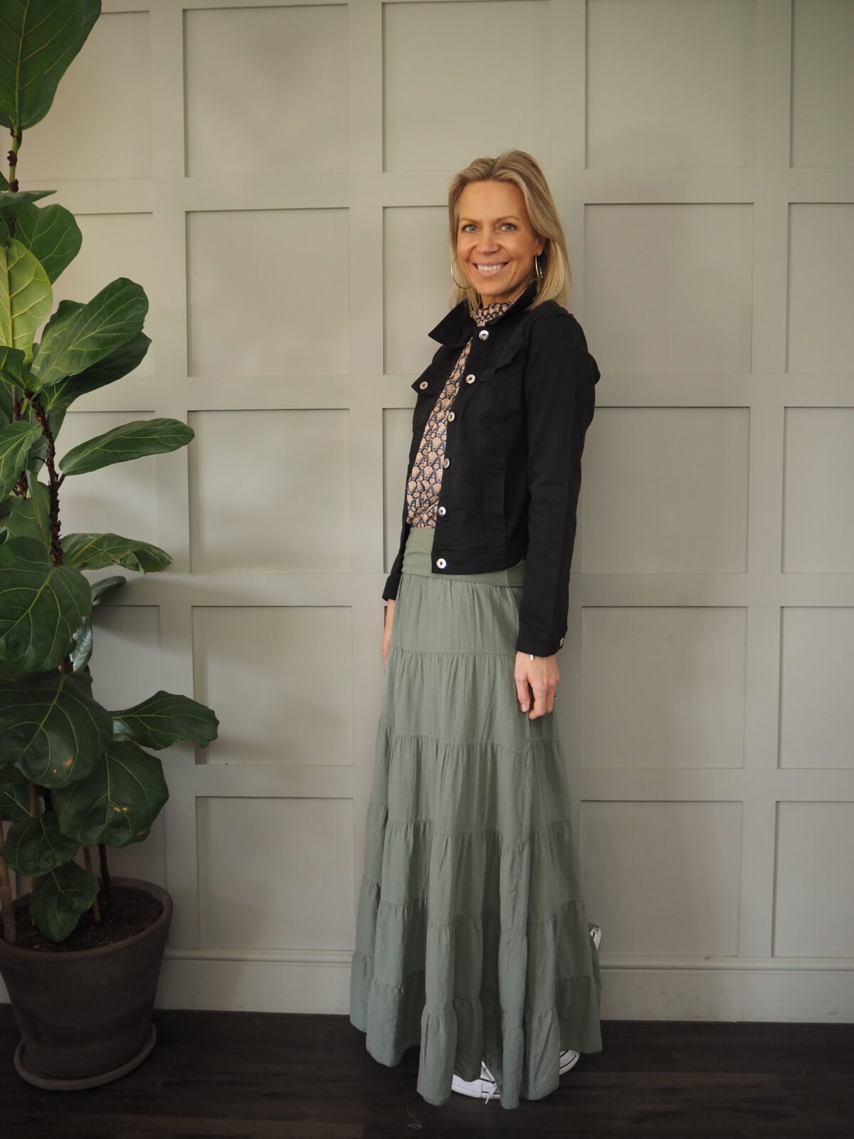 Black worn with the Khaki LINDY skirt and Black Kenzo blouse.