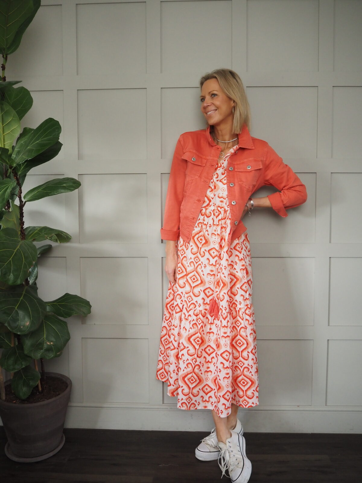 Indigo Lightweight Cotton Jacket with Button Fastening & Pockets - Coral