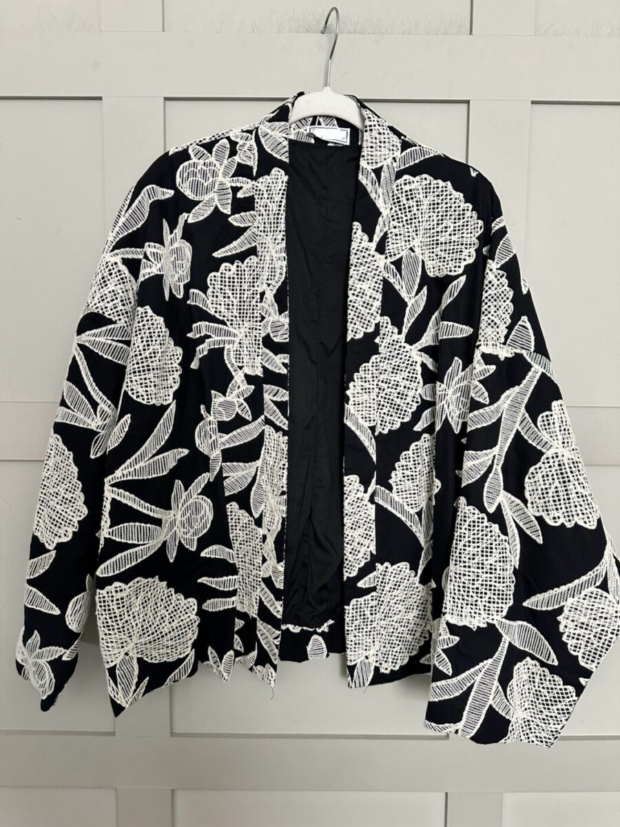 This beautifully embroidered, cotton jacket is a fantastic lightweight piece which can be worn casually with jeans or layered with a dress or skirt. A great, easy to wear outer layer for the spring and summer.