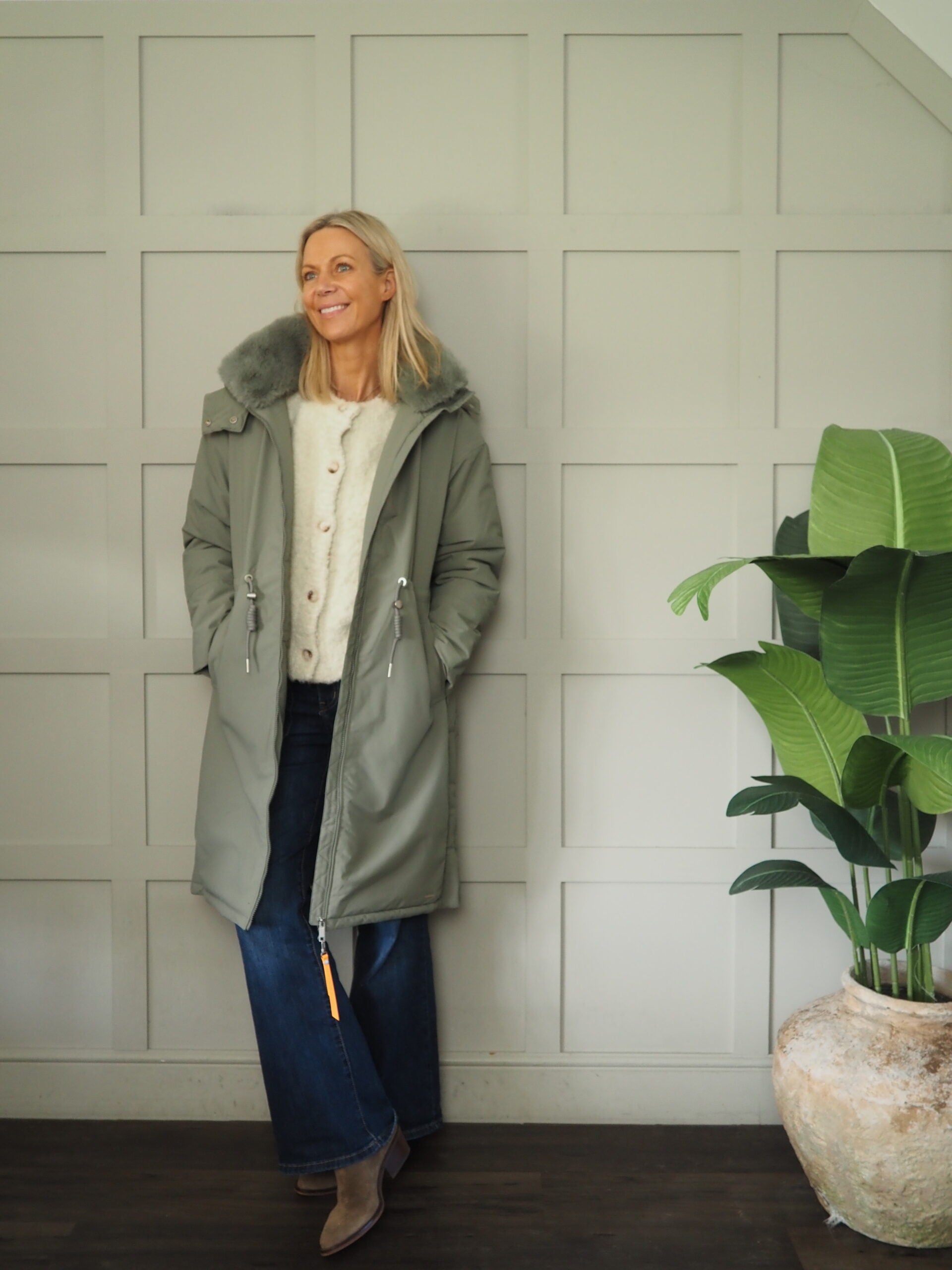 Quinte Coat With Detachable Faux Fur Collar and Hood by Rino & Pelle - Green Ash