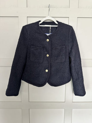 Marli Round Neck Boucle Jacket with Gold Buttons - Dark Navy Blue