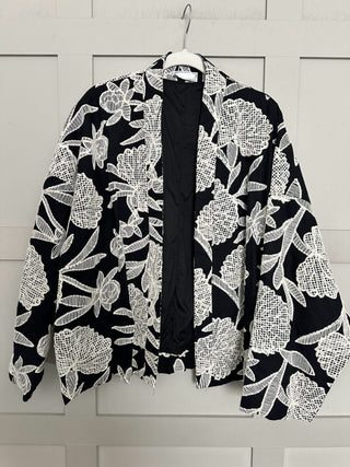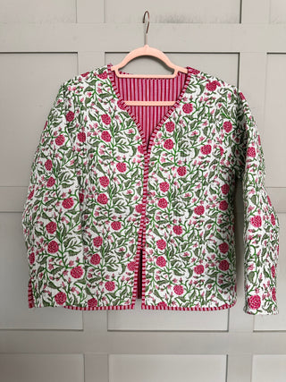 Katherine Quilted Jacket with Scallop Detail - Coral, Navy Blue, Royal Blue