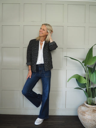 Brema Leopard Print Cotton Jacket with Pockets - Apricot, Blue, Grey, Neon Orange/Pink, Pink, Red/Pink