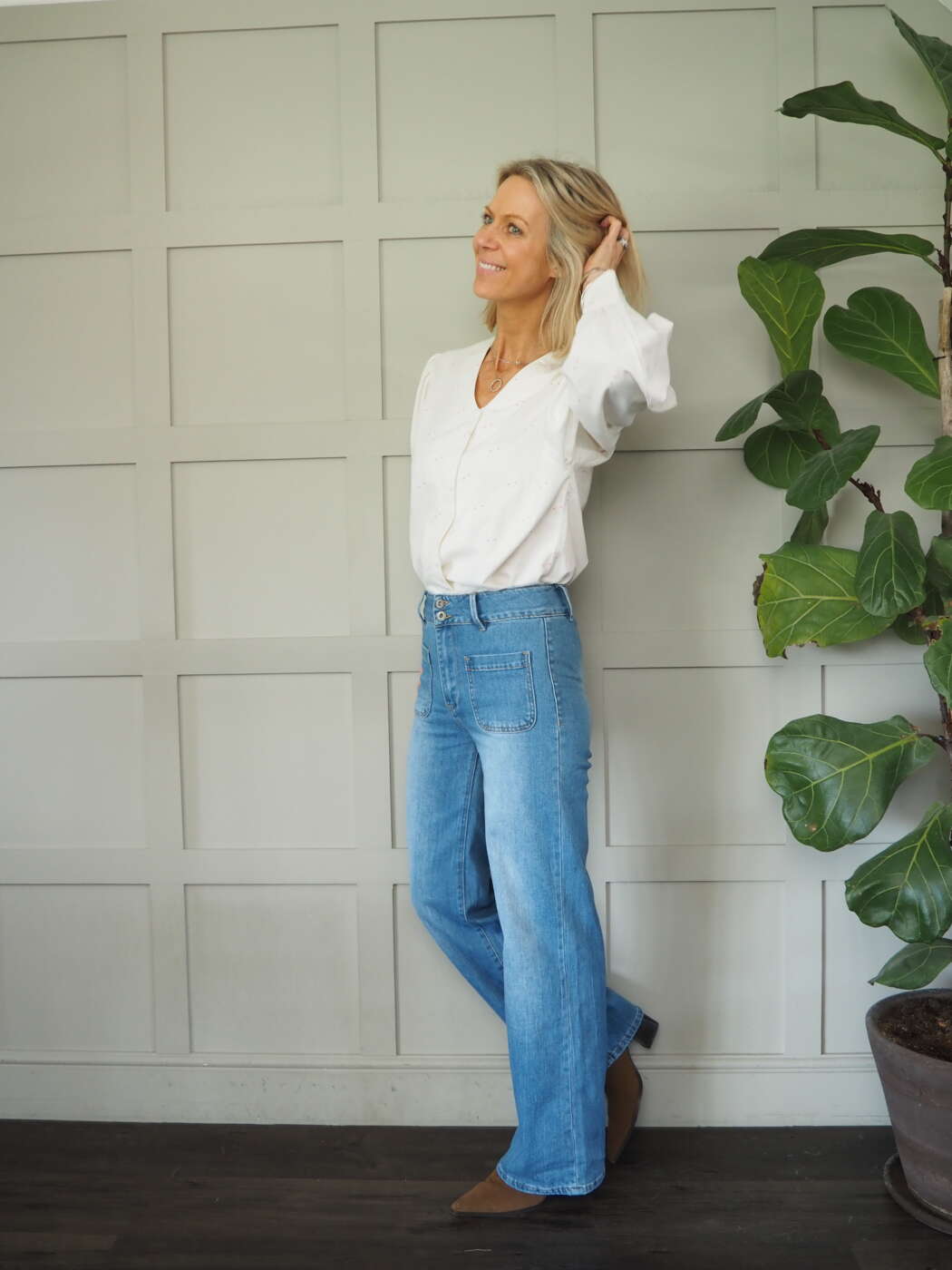Introducing the Daze jeans which feature a two button fastening and a zip fly. These have pockets to the front, none at the back, belt loops and the legs are wide.