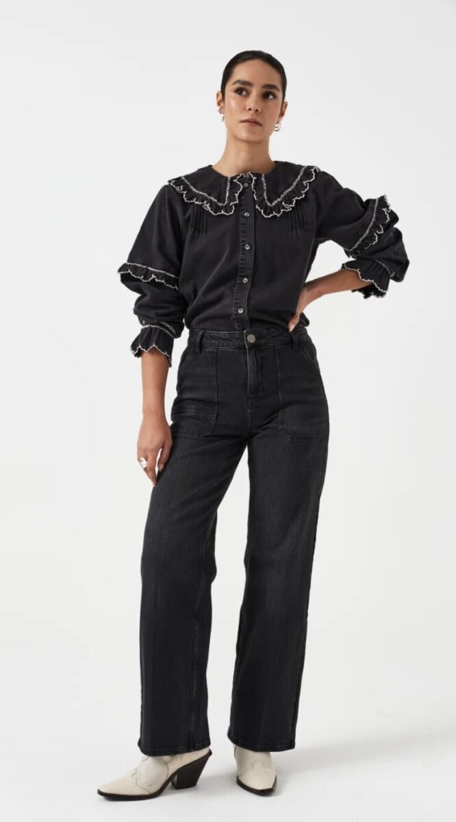 Seventy&Mochi signature Elodie jeans now come in a longer length. These are high-rise, full length and wide leg with Retro inspired patched pocket detail. They have a bit of stretch which makes them very comfortable to wear.