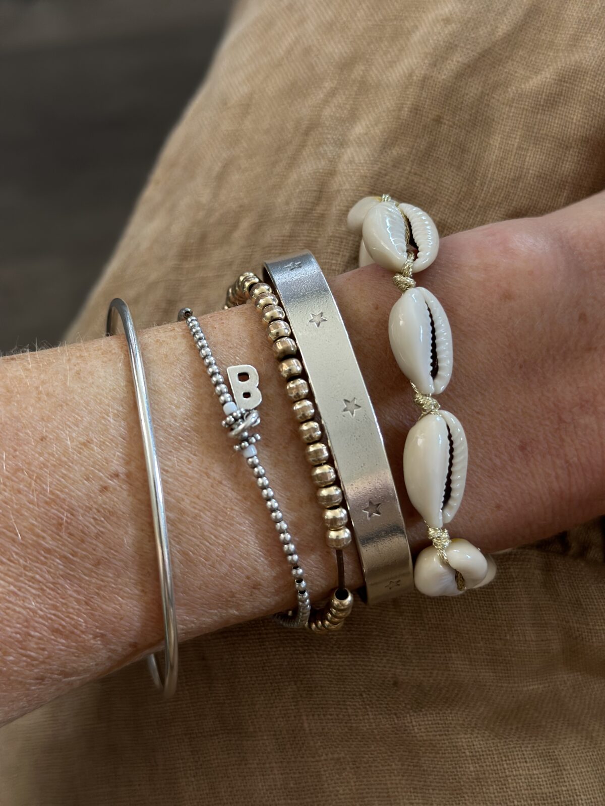 This shell jewellery is simply gorgeous! Pretty shells on a sparkly golden thread with a gold adjustable clasp.