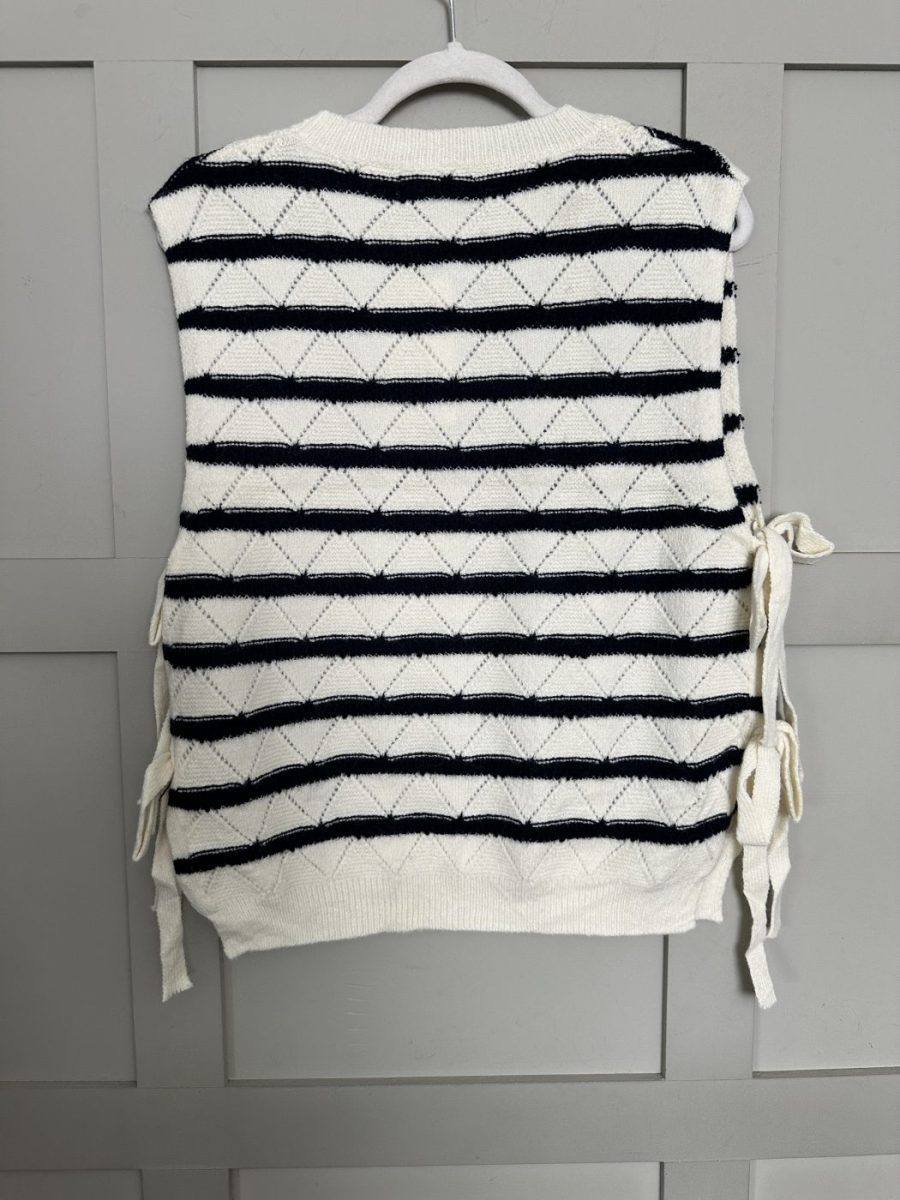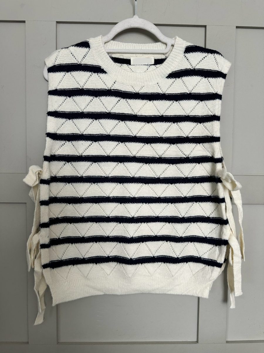 The super soft Cerina tank top is a great layering piece and can be worn over vests, blouses and T shirts. It has a pretty zig zag design in the knit, horizontal stripes and two side ties on either side which can be adjusted to suit your size.