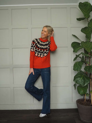 Livia Round Neck Fine Knit Jumper - Coral, Denim Blue, Navy Blue and Oatmeal